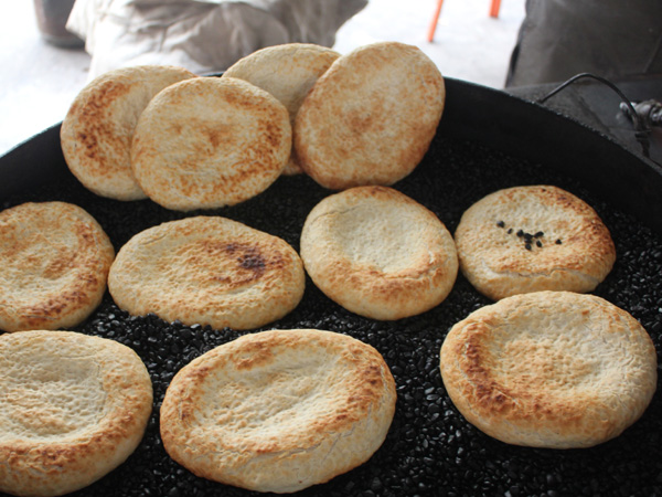 石子馍又称石子烧饼,因用豆石垫在鏊上烙熟而得名,是灵宝市、卢氏县的一种风味食品。其外形焦黄鲜亮,中凹边突,表面布满被石子烫黄的圆点,活像一个椭圆形的小金盆,咬开后层次分明,外酥内软,咸香可口。由于石子馍历史悠久,加工方法原始,被称为中国食品中的“活化石”。