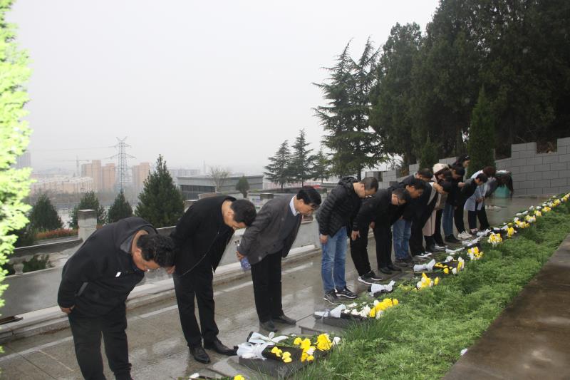 4月1日,在蒙蒙细雨中,陕州区委办副主任、区委史志编纂中心主任张英才带领全体机关干部,到陕州烈士陵园开展清明缅怀革命先烈祭扫活动,践行“学党史、感党恩、跟党走”党史学习教育。
