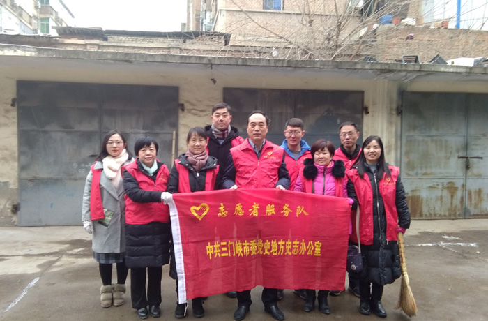 2019年2月14日下午,市委党史方志办主任郝建伟带领志愿者到责任小区――黄河路西段甘棠新居,参加城市清洁行动志愿服务。副主任周箐、韩霞,副调研员卢亚杰等参加活动。