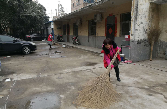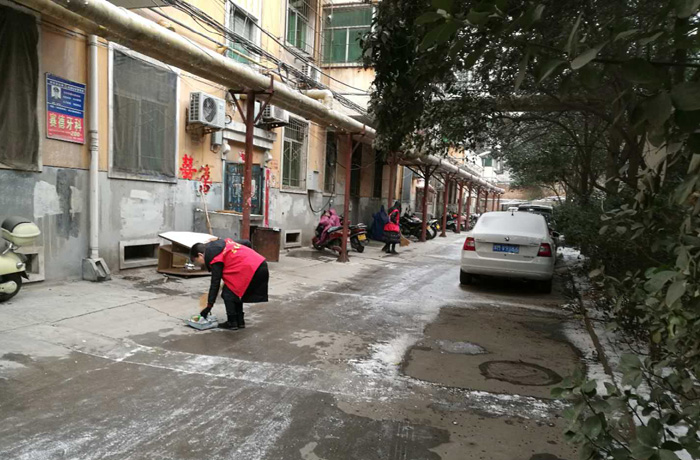 雪后初晴,路面结冰,志愿者们带着扫帚、笤帚、撮斗、镊子等劳动工具,对小区的积雪、结冰路面进行了清理,极大方便小区居民出行。志愿者们仔细清扫了小区楼院的垃圾、杂物和乱涂乱贴的小广告等,小区的卫生状况得的极大改善。虽然天气寒冷、地面湿滑,但志愿者们干得热火朝天,大家看着打扫后干净整洁的小区,露出了欣慰的笑容。郝主任还与湖滨区前进街道办事处友谊居委会有关人员对小区卫生整治工作进行了交流。