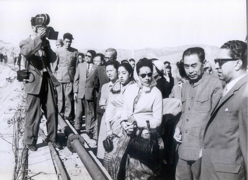 1961年10月8日,周恩来总理陪同尼泊尔马亨德拉国王视察三门峡水利枢纽,了解水库蓄水运用情